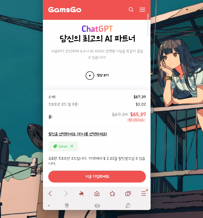챗GPT도 정가 29,000원인데, 겜스고에서는 7천원대로 이용 가능하고요.